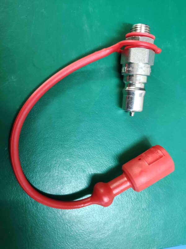 Befüll Anschluss mit G1/4″ Aussengewinde. Die allermeisten Zentralschmierpumpen haben ein 1/4″ Gewinde, wo dieser eingeschraubt werden kann. (Meistens muss der Schmiernippel zur Befüllung entfernt werden)