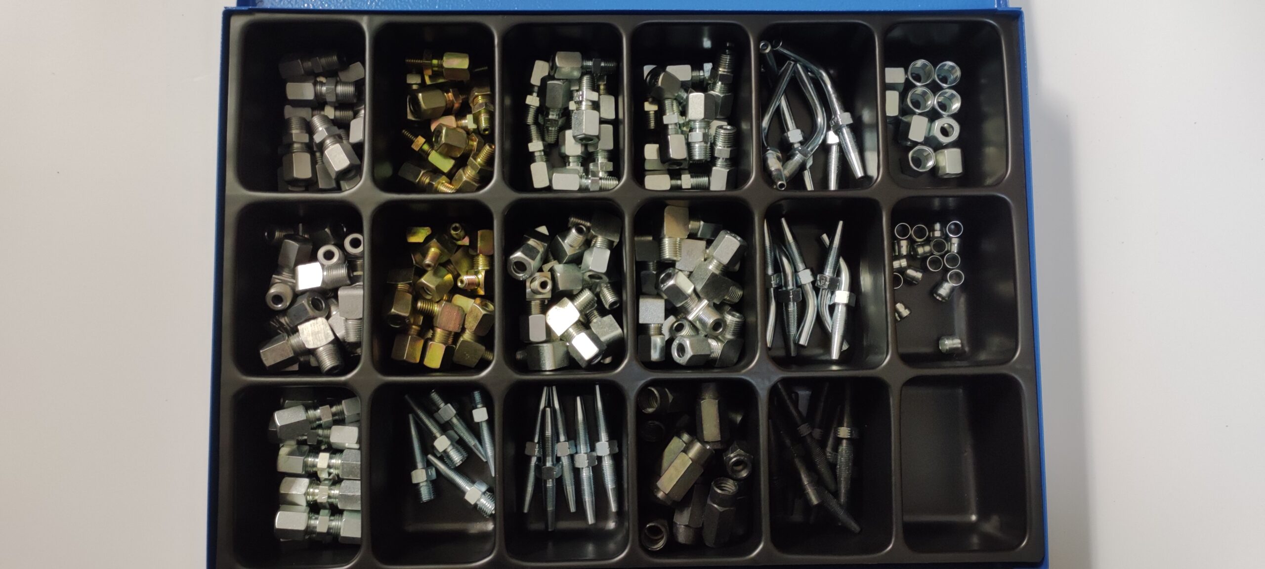 Ideal zum Reparieren von Zentralschmieranlagen. Da die Box klein ist, passt diese in jeden Servicewagen und darf in keiner Werkstatt fehlen.